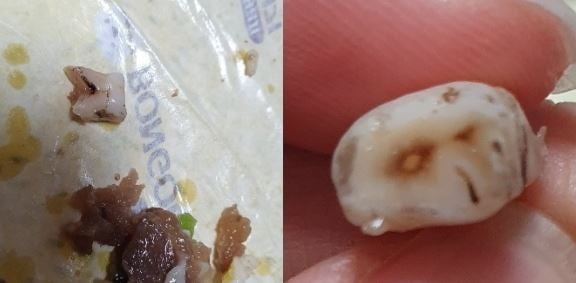 본사 관계자는 "해당 이물질을 확실하게 검증해 봐야 한다. 이빨처럼 보일 수 있지만 아닐 수 있다"는 답변을 전했다고 한다.